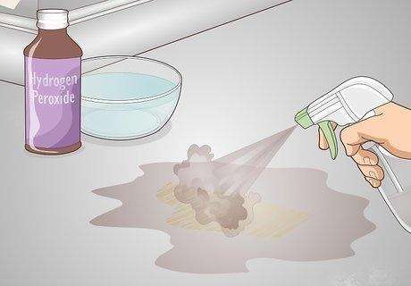 5.用双氧水去除未完成混凝土上的干油污渍。如果是这种情况,将1份过氧化氢和3份水倒入喷雾瓶中并摇匀。将混合液喷在污渍上,让其静置20分钟。然后,在20分钟后,用刷子刷洗以帮助去除污渍。
